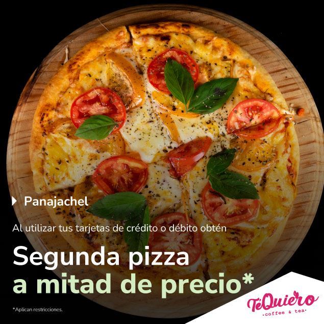 La promoción está disponible para consumo en cafetería y para llevar, no está válida para servicio a domicilio. La promoción es válida únicamente en el área de cafetería Te quiero Coffe no para el área de restaurante.