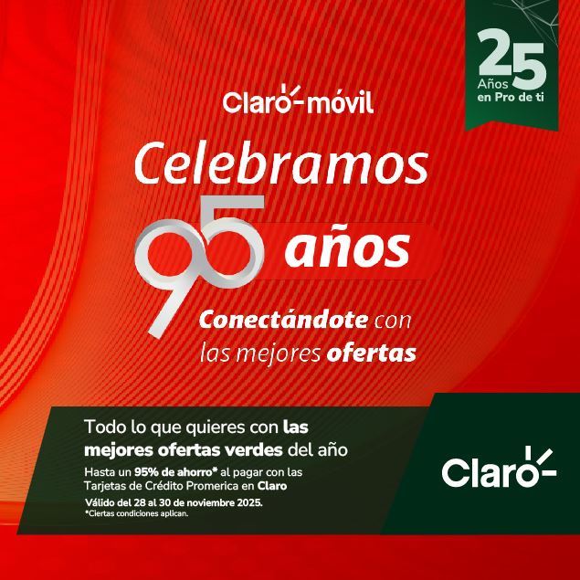 *Consumo mínimo de RD$5,000 y tope máximo de devolución de RD$6,000 por cliente. La devolución será realizada a los 30 días de finalizada la promoción. No aplican las Tarjetas de Crédito Empresariales. *Promoción aplica para equipos móviles, dispositivos loT, Tablets, Laptops, Televisores, Repetidores y Videojuegos disponibles en los Centros de Atención a Clientes, Tiendas en Línea y Centros de Ventas Claro seleccionados.