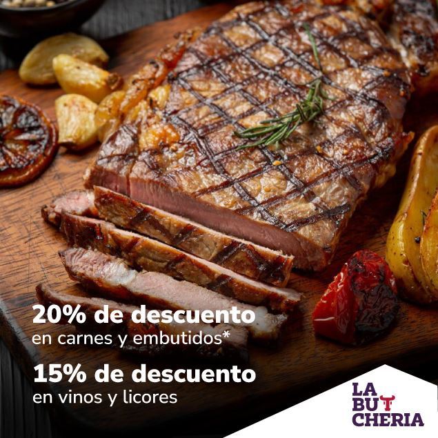 • *Descuento 20% aplica en carnes de: res, cerdo y pollo. Descuento aplica para un máximo de compra de $200 por cliente. Si la compra es superior, el excedente no aplicará a descuento.