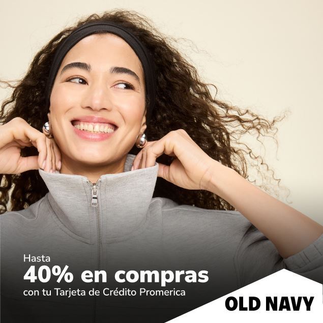 • Descuento inmediato aplica en toda la tienda del 30% de descuento aportado por Old Navy y un 10% de descuento adicional por parte de Banco Promerica.