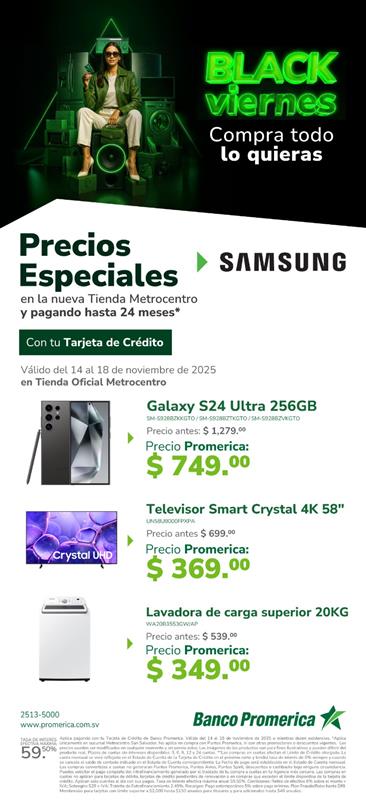 • No aplica en compra con Puntos Promerica, ni con otras promociones o descuentos vigentes.