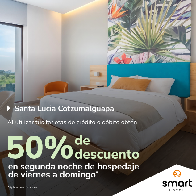 segunda noche de hospedaje a 50% de descuento de viernes a domingo. Válido al 31 de marzo 2026