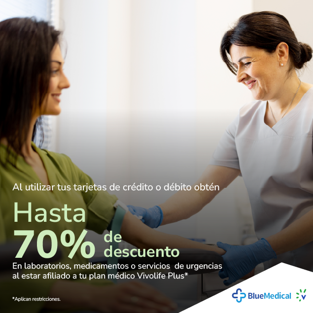Hasta 70% de descuento en laboratorios, medicamentos o servicios de urgencias al estar afiliado a tu plan médico Vivolife Plus.
