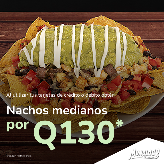 Nachos medianos por Q130. Válido al 30 de noviembre 2026