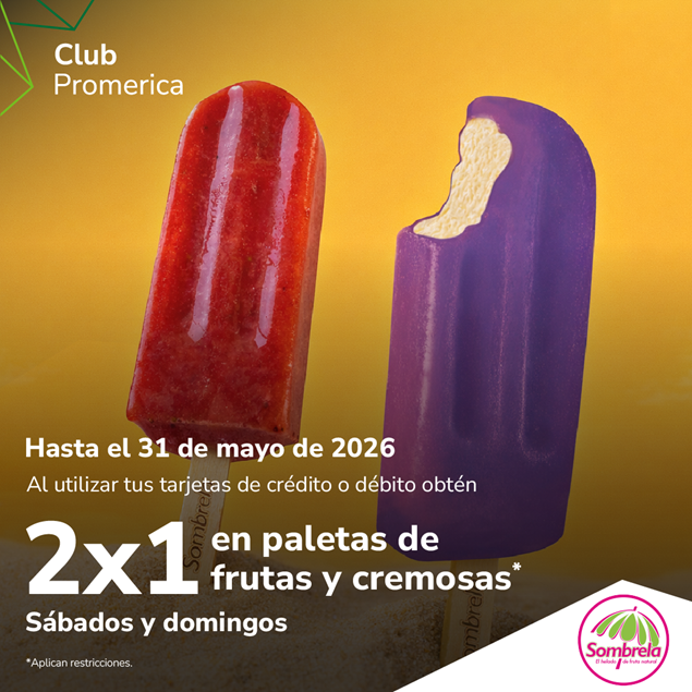 2x1 en paletas de frutas y cremosas sábados y domingos Válido al 31 de mayo 2026