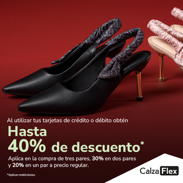 Hasta 40% de descuento en la compra de tres pares, 30% en dos pares y 20% en un par a precio regular.