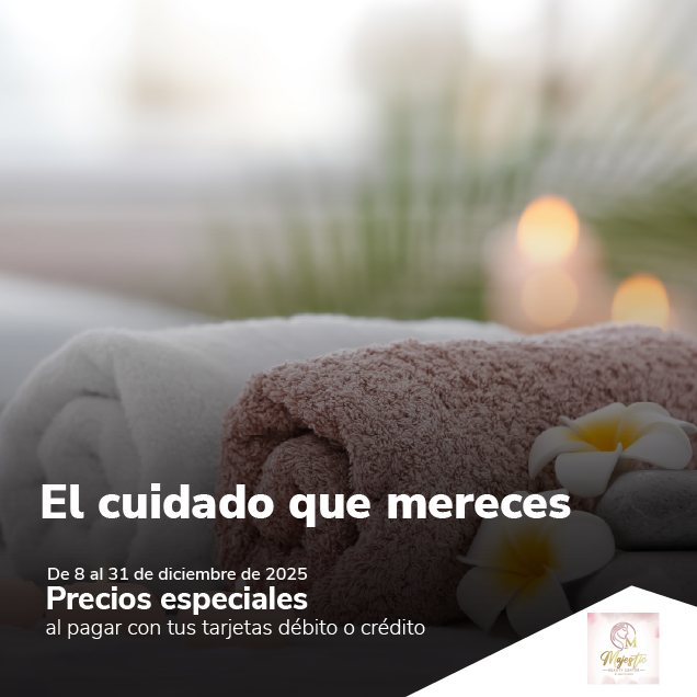 Promoción válida del 8 al 31 de diciembre de 2025. Recibe precios especiales en los siguientes servicios: Head Spa (incluye: limpieza profunda del cuero cabelludo, exfoliación suave, masaje relajante y terapia hidratante) y Facial de rejuvenecimiento con láser (tratamiento enfocado en estimular el colágeno, mejorar la textura, luminosidad y apariencia general de la piel), al pagar con tus tarjetas débito o crédito de St. Georges Bank. El beneficio será otorgado directamente por el comercio. No aplica con otras promociones o descuentos. Requiere cita previa. No aplican tarjetas corporativas o regionales. El Banco se reserva el derecho de modificar características y beneficios ofertados en este arte. La responsabilidad del Banco se limita exclusivamente a aspectos propios del crédito otorgado a través de la Tarjeta de Crédito y no por los productos o servicios adquiridos mediante el uso de la tarjeta.