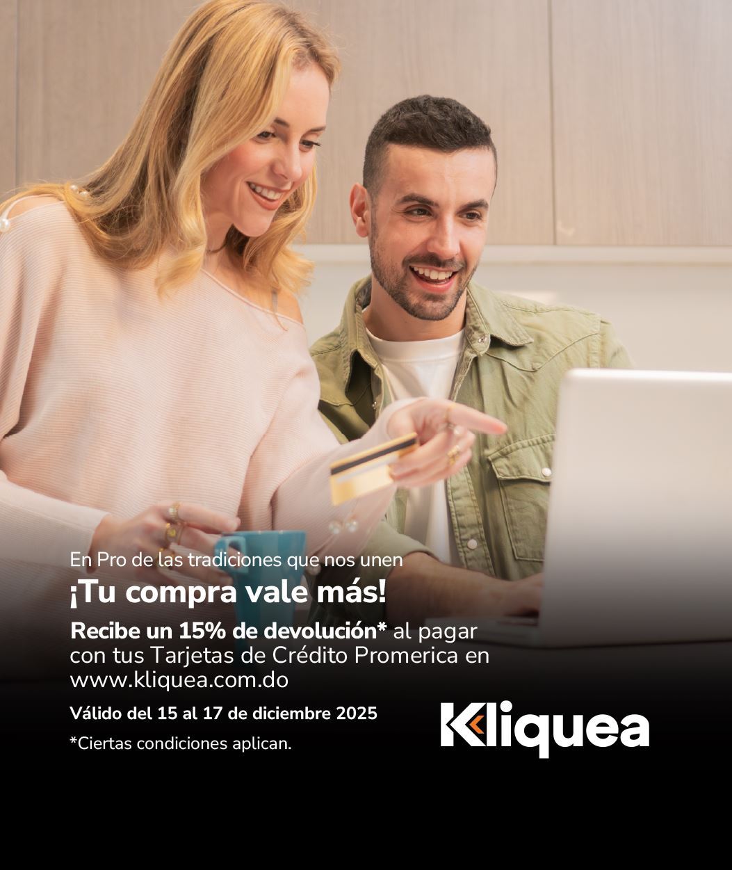 15% de devolución* al pagar con tus Tarjetas de Crédito Promerica en www.kliquea.com.do