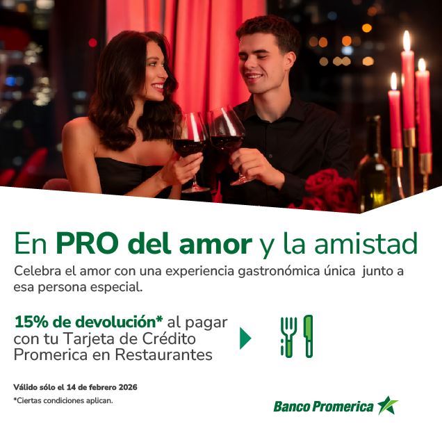 15% de devolución* al pagar con tu Tarjeta de Crédito Promerica en Restaurantes